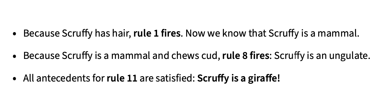 Forward chaining starts with the available data and uses inference rules to extract more data (in the form of conclusions or actions) until a goal is reached