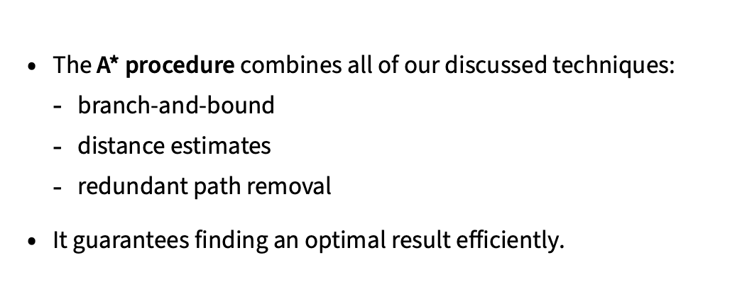 branches). (nodes in search tree)bounds (upper or lower limits, depending on whether it’s a maximization or minimization problem) on the objective function. These bounds are used to estimate the best possible solution within that subset.Pruning: If the bound of a subset indicates that it cannot possibly contain a better solution than the best one found so far, that subset (branch) is discarded or “pruned” from the search. This step is crucial as it significantly reduces the number of subsets that need to be examined.optimal search–>heuristic branch-and-bound