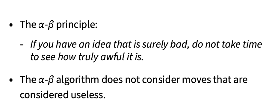 this allows for perfect play: the behavior or strategy of a player that leads to the best possible outcome for that player regardles of the response by the opponent.