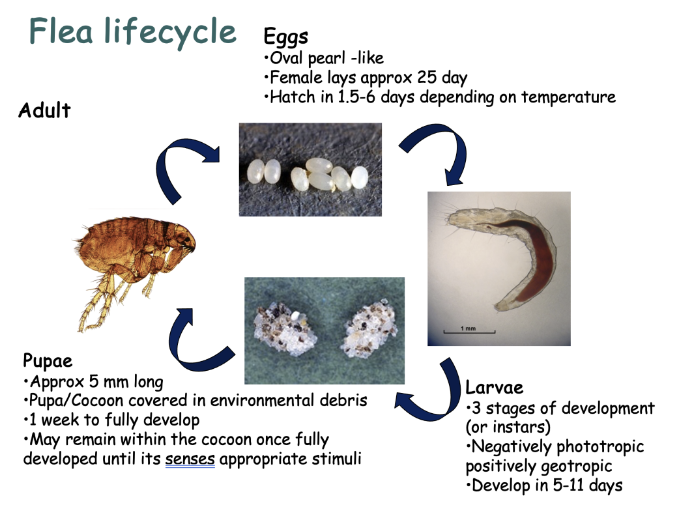 Describe the flea lifecycle