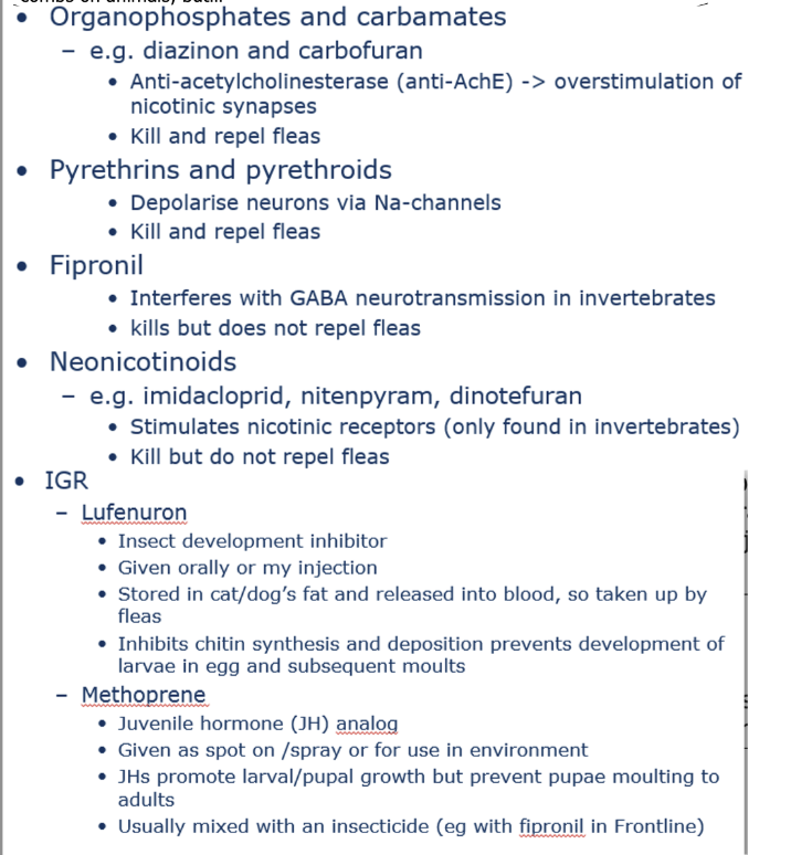 Adult female cat flea sucks 13.6µl blood per day, severe infestation of young/old animals can lead to anemia