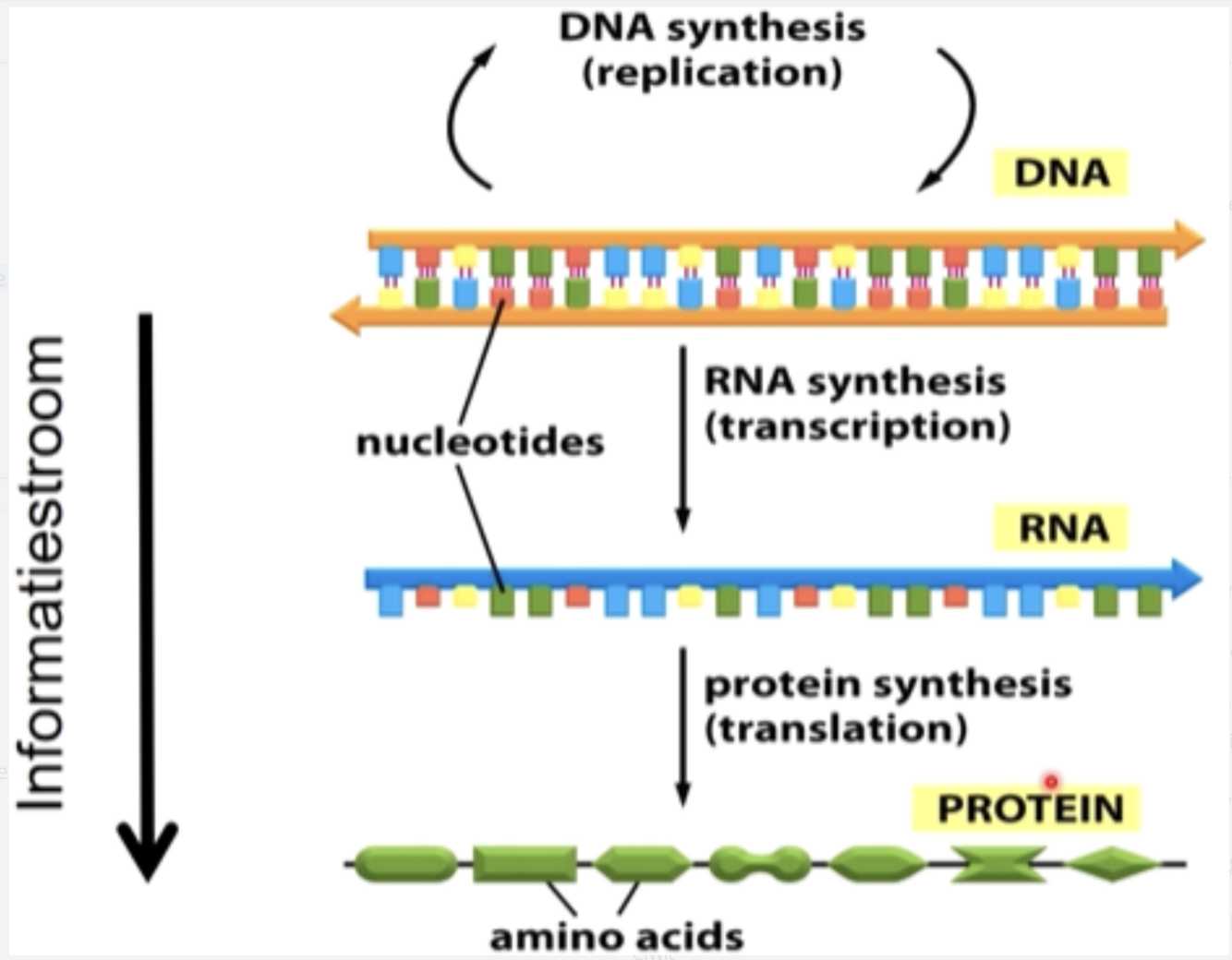 Informatiestroom van DNA naar eiwit, maar niet andersom