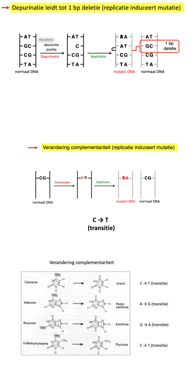 - Transversie: overgang plaats van een purine (A/G) naar een pyrimidine (C/T) of andersom