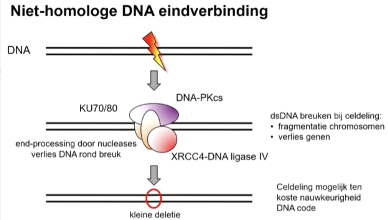 Hoe verloopt de Niet Homologe DNA eindverbinding bij herstel van dubbelstrengs DNA-breuken?