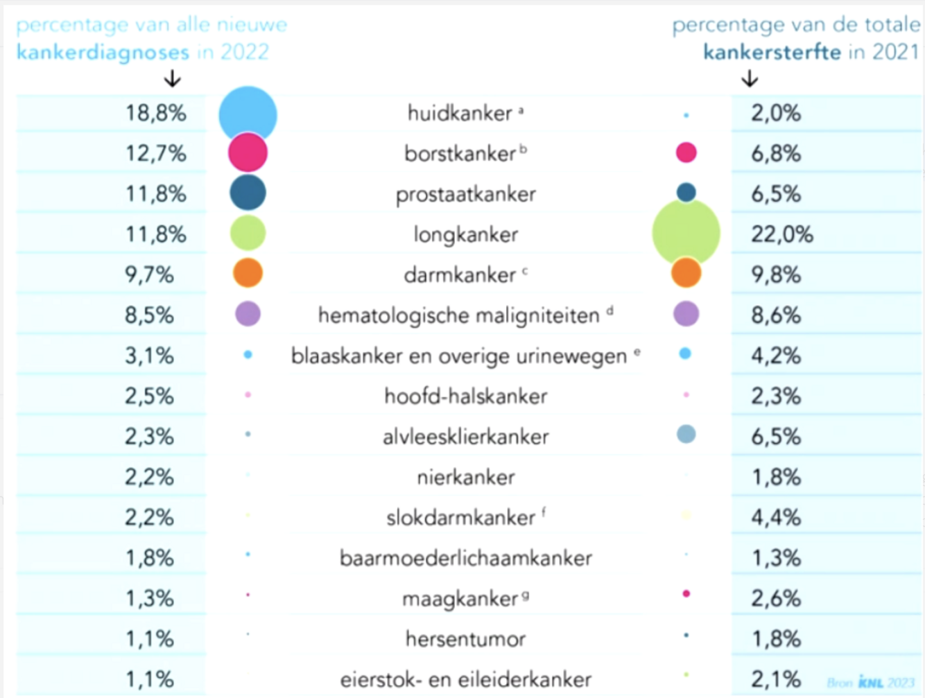 - voornamelijk huid, dikke darm, borst (vrouwen), long en prostaatkanker (mannen)