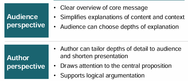 what does pyramid principle allow from audience perspective? and from author perspective?