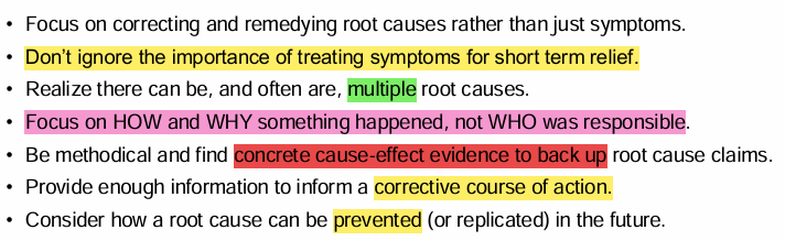 which are the core principles in root cause analysis?
