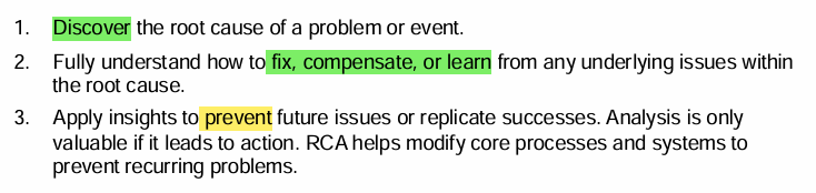 which are the main goals of root cause analysis?