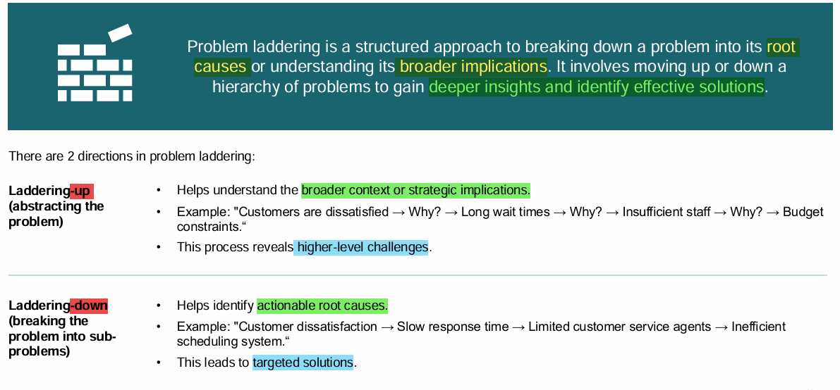 what is problem laddering? which are the 2 directions?