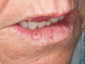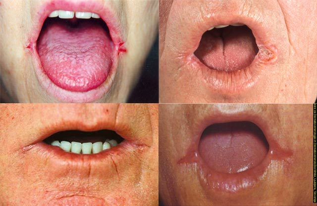 Deep cracks at labial commisure.