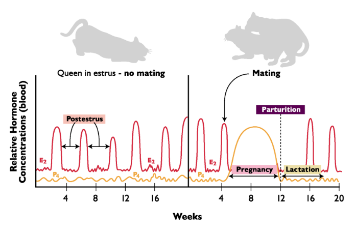 * Cats need to mate multiple times in order to ovulate