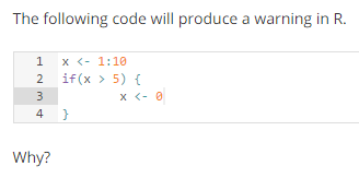 ‘x’ is a vector of length 10 and ‘if’ can only test a single logical statement.