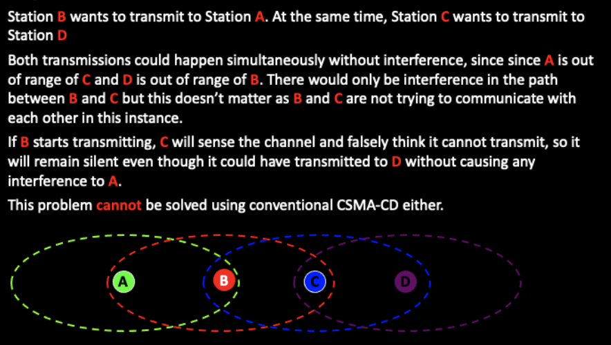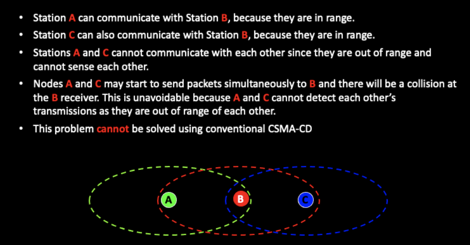 On a wireless network its not always possible for a station to hear all other stations, so a sending station that is free to transmit has no way of knowing if the receiving stations is free as well.