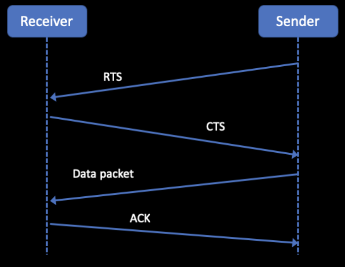 4. If RTS reaches the destination successfully, the destination sends a Clear to Send (CTS) message after waiting a prescribed amount of time, called Short Inter Frame Space (SIFS).
