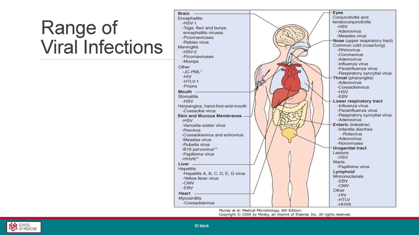Range of viral infections?