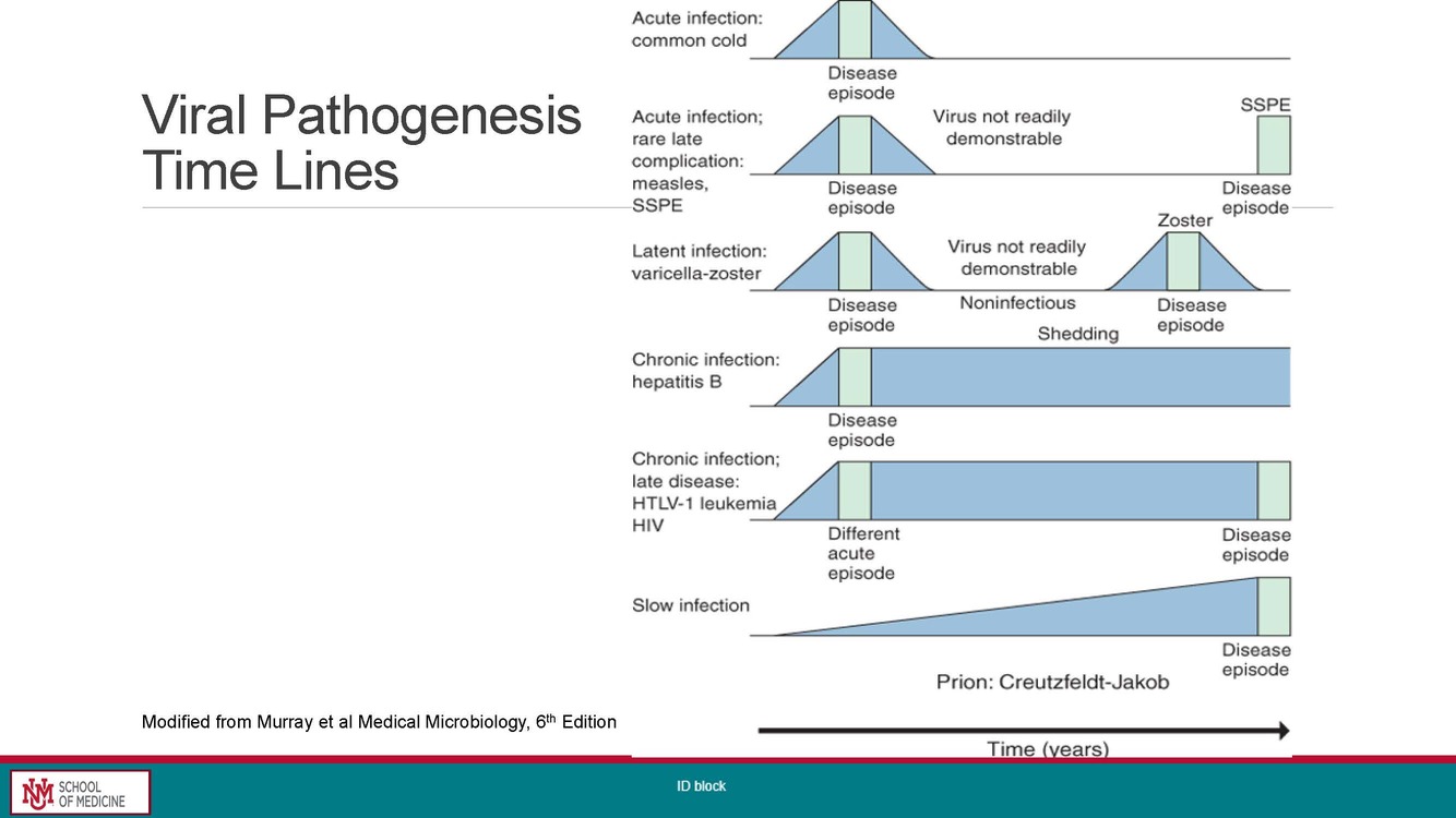 Describe the possible viral pathogenesis time lines