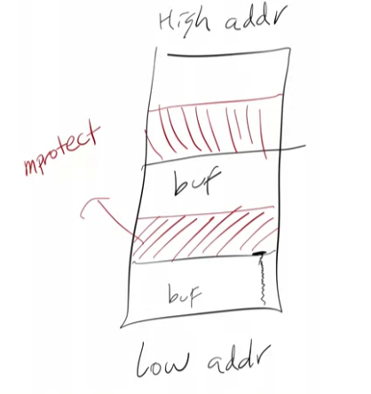 SO, if we call malloc and allocate another buffer, (the upper one), we give it another electric fence.