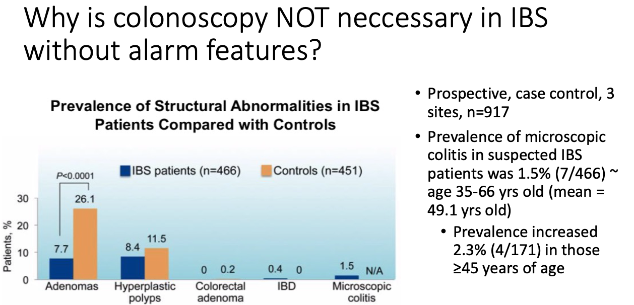Why is colonoscopy not necessary without alarm features?