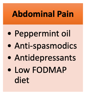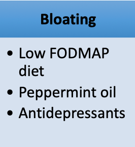Treat predominant symptoms. Bloating