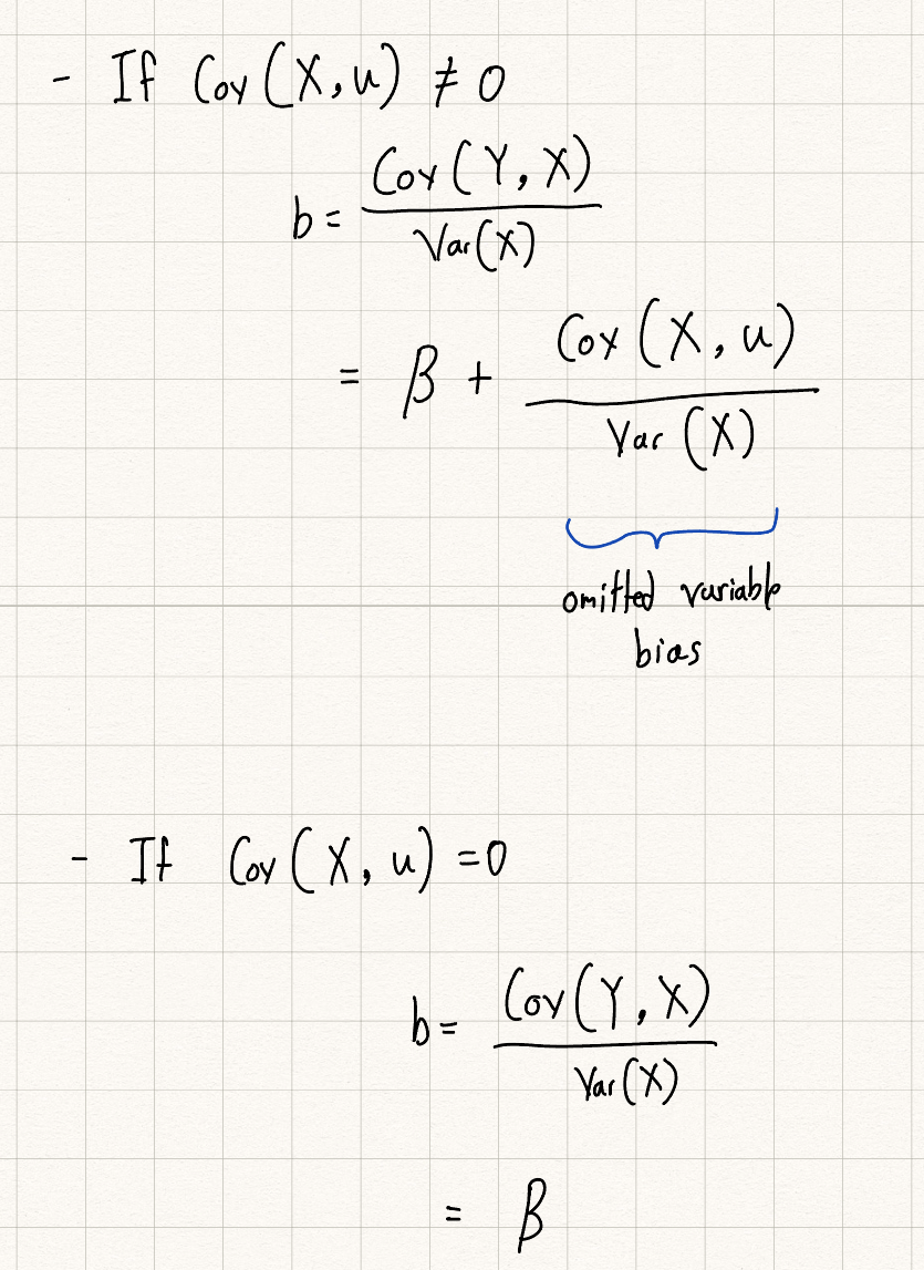 How to show omitted variable bias in both cases? compare when X and u and correlated and uncorrelated.