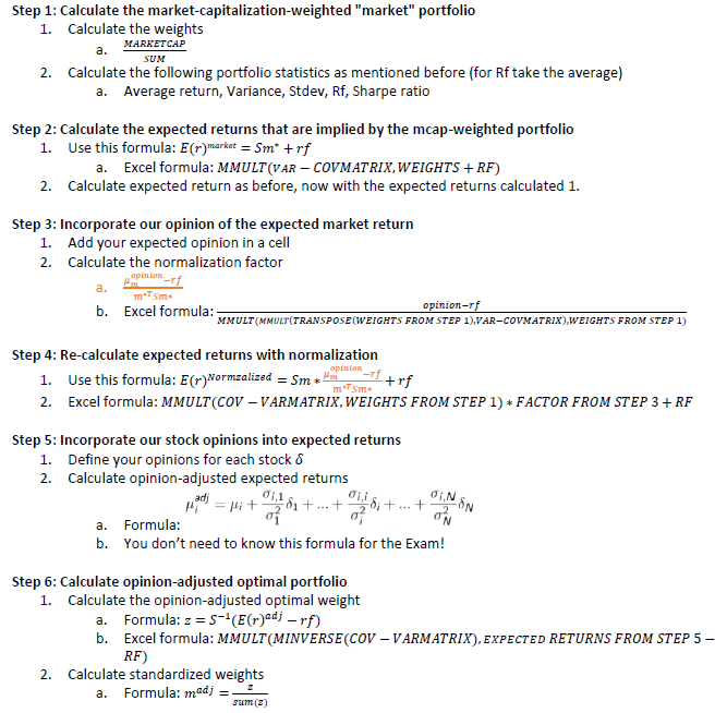 What are the steps in the black-litterman model