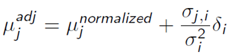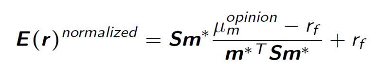 Market implied return + (small component that depends on the covariance of the stock we’re adjusting with stock we have opinion about / stock we have opinion about) * opinion