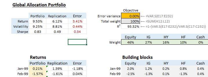 * Gives insights on how to replicate fund’s return -> reverse engineer investment strategies using only historical performance data