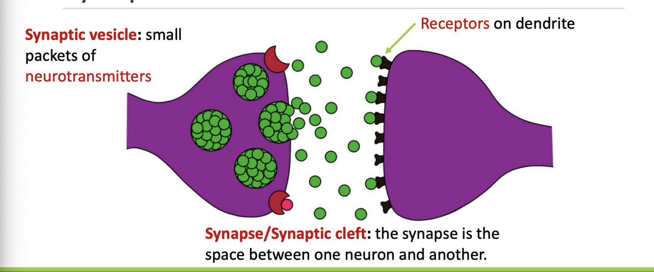 tiny gap between the ends of this cells axon and the dendrites of other neurons