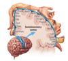 meninges and cerebro-spinal fluid (CSF) in the centrical ventricles