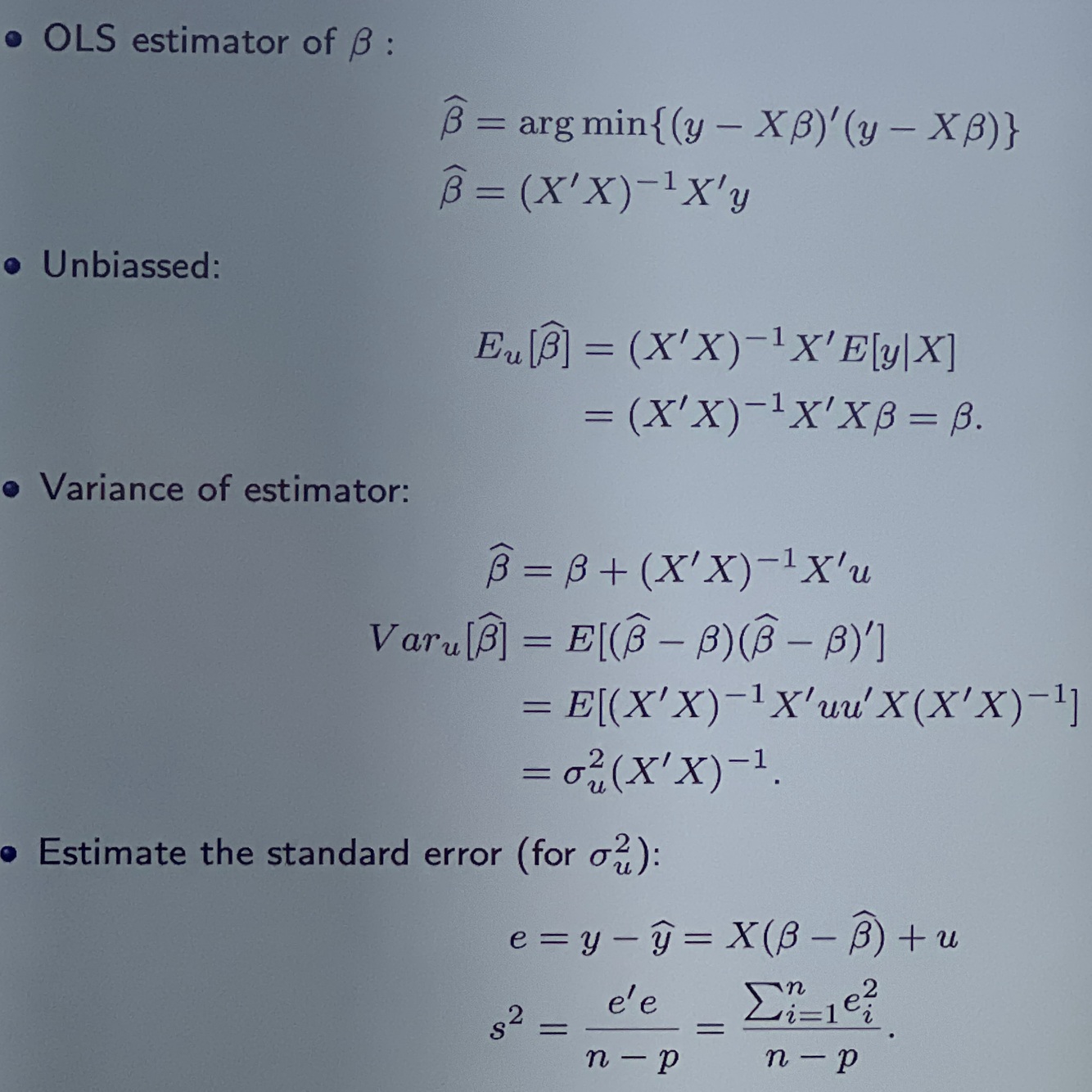 OLS is used to estimate parameters by minimising sum of squares of residuals