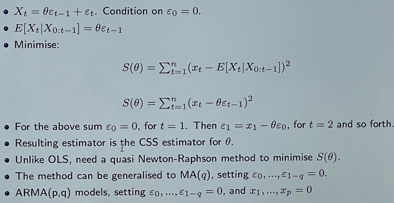 To estimate parameters of a time series model that doesn’t start at an infinite point in the past