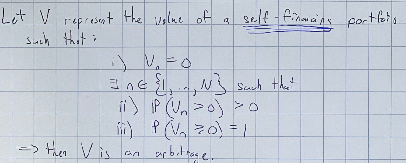 A self financing portfolio is a sequence of positions in 2 assets {α} and {β} which does not require any injection of value after time 0