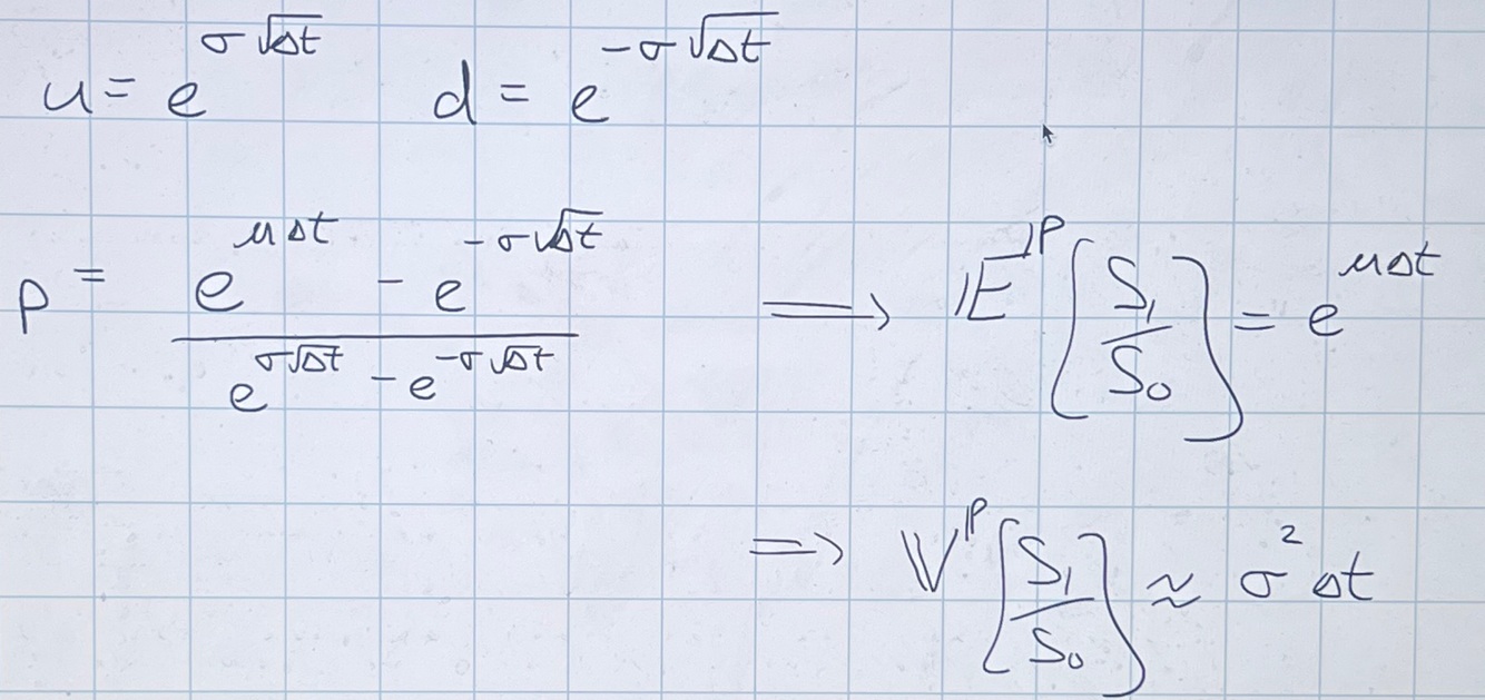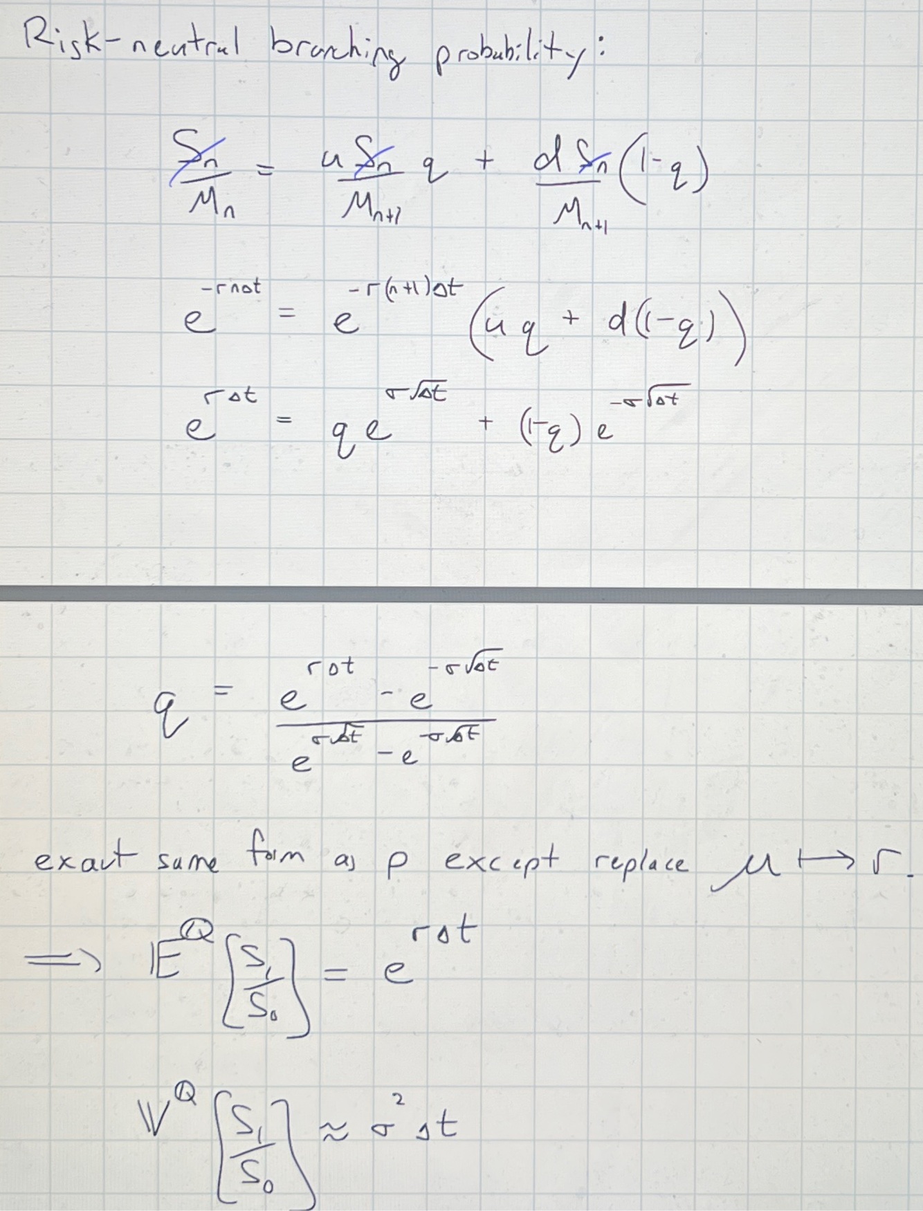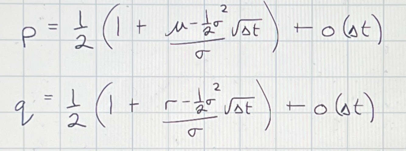 Taylor expansion of p and (risk neutral prob) q up to deltaT term