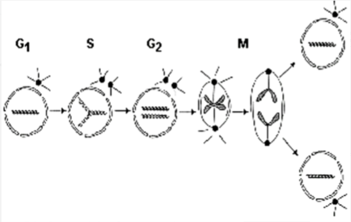 M: uitverdeling van de chromosomen over de dochtercellen (mitose), dochtercellen weer naar G1 fase