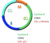 ATP kan niet meer binden → fosforylering stopt → cellen stoppen met delen