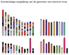 Alle chromosomen op een rijtje van groot (1) naar klein (22) met de X en X/Y