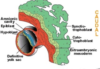 BILAMINAR EMBRYONIC DISK SITS ON TOP OF YOLK SAC