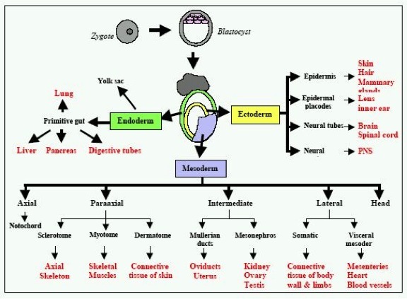 IF DEVELOPMENT PROCEEDS NORMALLY THE 3 GERM LAYERS GIVE RISE TO THE TISSUES/PORGANS INDICATED IN THIS SLIDE