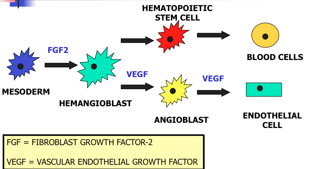 MESODERM RESPONDS TO FGF2 – DIFFERENTIATES INTO HEMANGIOBLASTS – A PRECURSOR CELL THAT GIVES RISE TO BLOOD VESSELS AND BLOOD CELLS