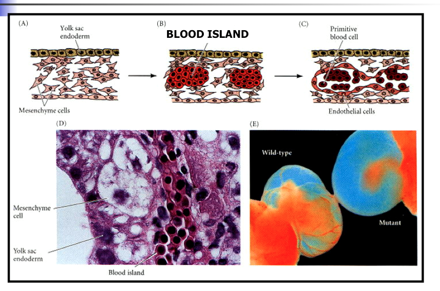 HEMANGIOBLASTS -DEVELOP FROM MESODERM - AGGREGATE TO FORM BLOOD ISLANDS – EXPLAIN ISLAND