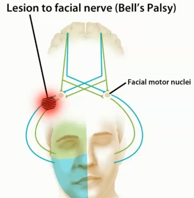 Facial paralysis - Complete destruction of the facial nucleus it self or its branchial efferent fibers (facial nerve proper)
