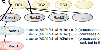 In hadoop, how do you calculate the distance between 2 nodes