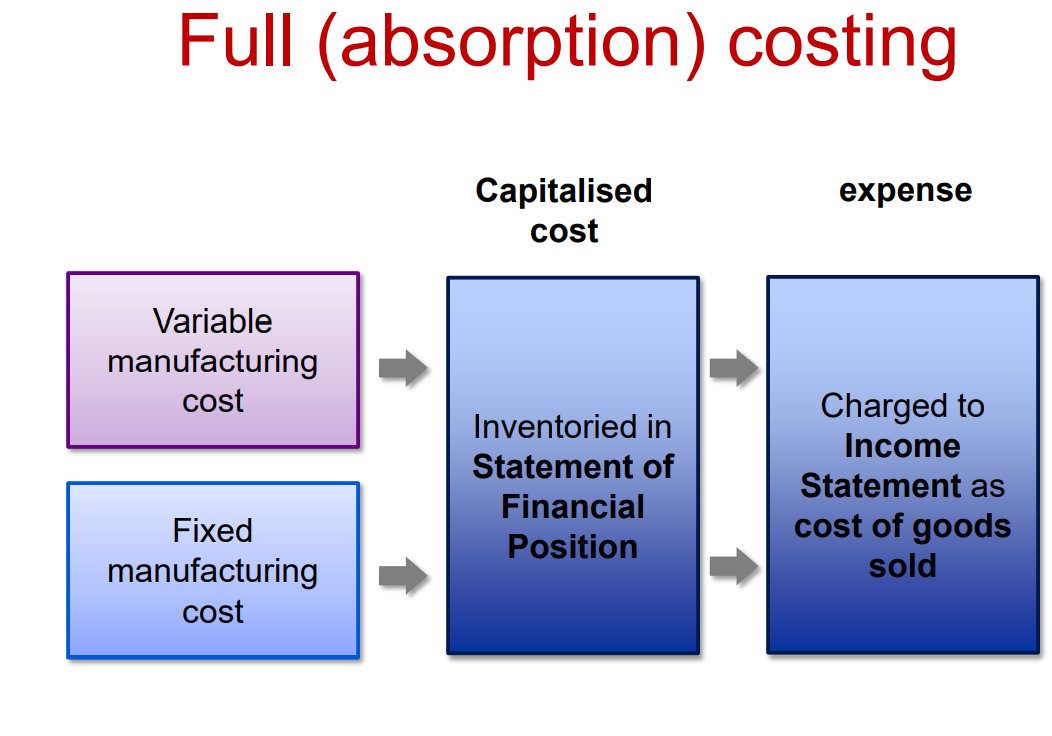 Variable manfuacturing costs are capitalised in closing inventory on SOFP and charged to I/S statement as Cost of goods sold.