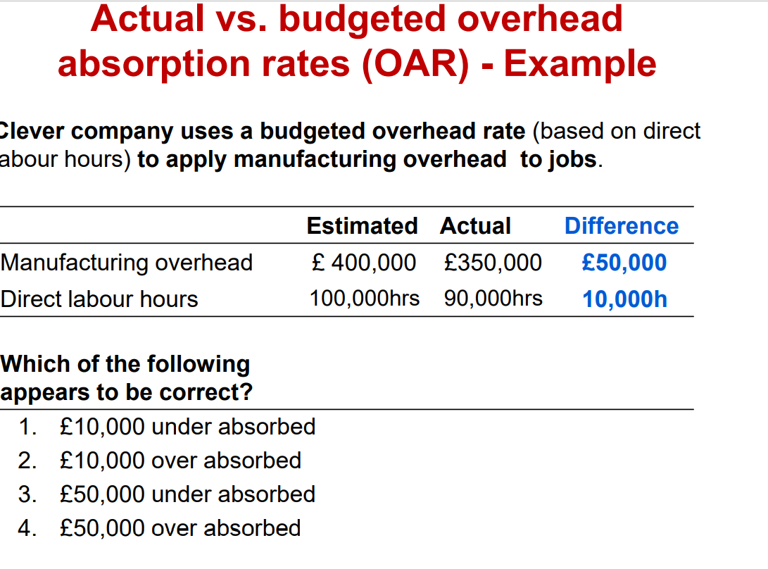 Actual overhead absorption rates