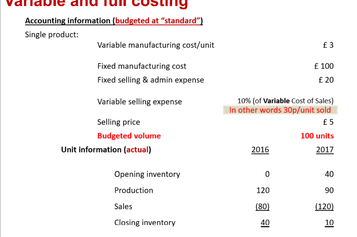 Absorption costing and variable costing