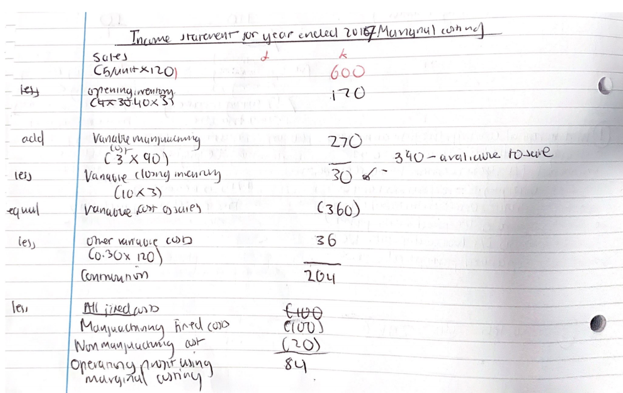 ( less other variable costs means non manfuacturing variable costs).