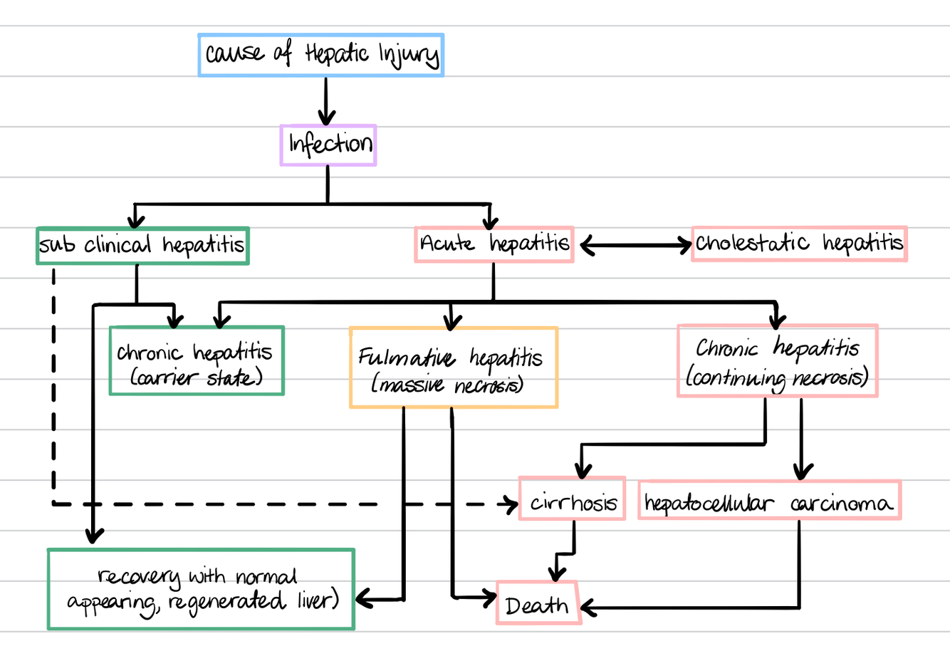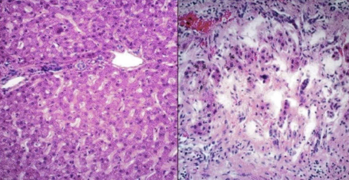 What is the progression of a healthy liver to liver cancer? Describe the 4 stages. (hint 2 have been said)