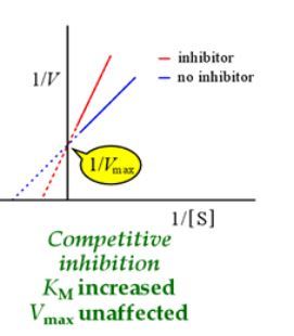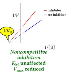 Km doesn’t change, Vmax lowers