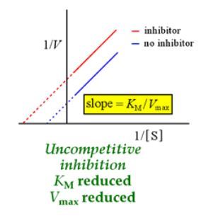 What does the lineweaker-burk plot look like for uncompetitive inhibition?