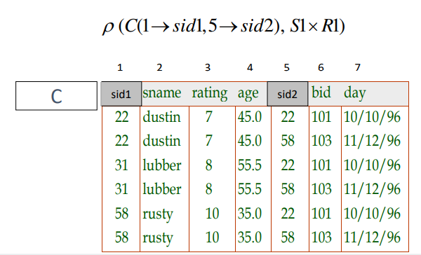 Rename an operator by taking a relation schema and gives a new name to the schema and the columns